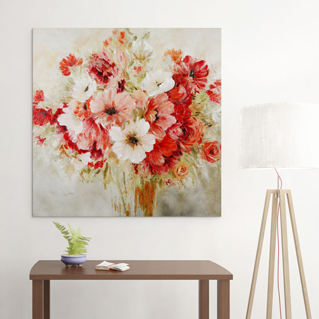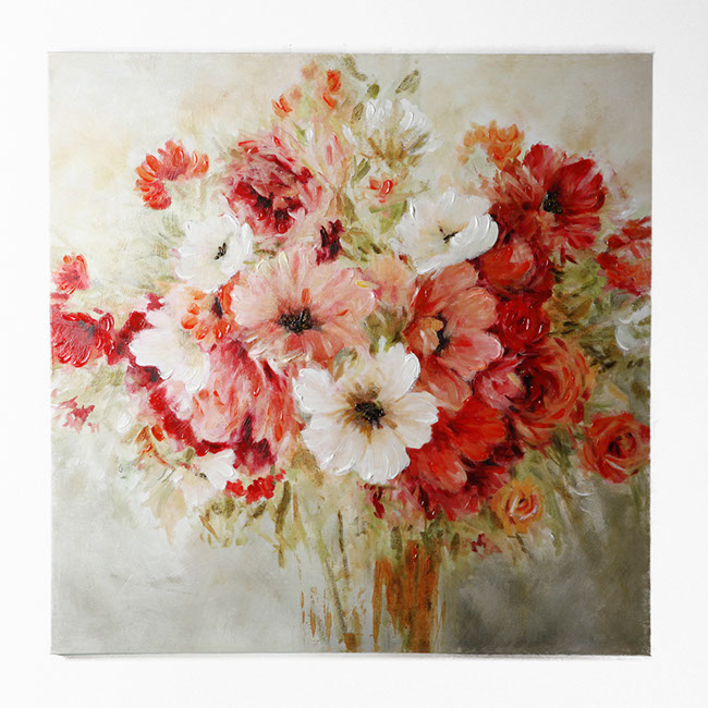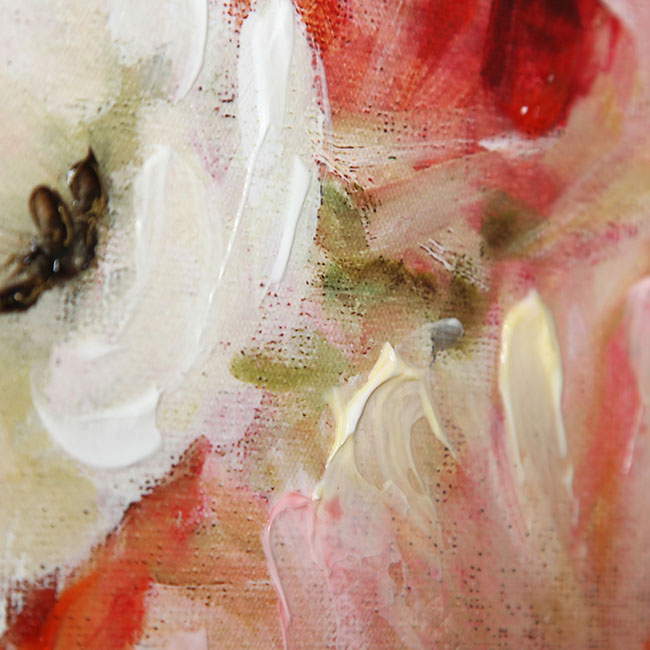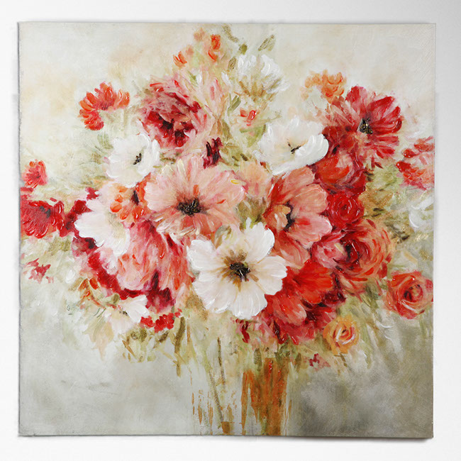 "Garden Passion I" by Carol Robinson is part of our Robinson Series of arts. The Robinson series are highly embellished , bright and cherry floral and also feature hand applied gold accents. This gallery wrapped hand embellished piece comes ready to hang . Pairs Well with Garden Passions II