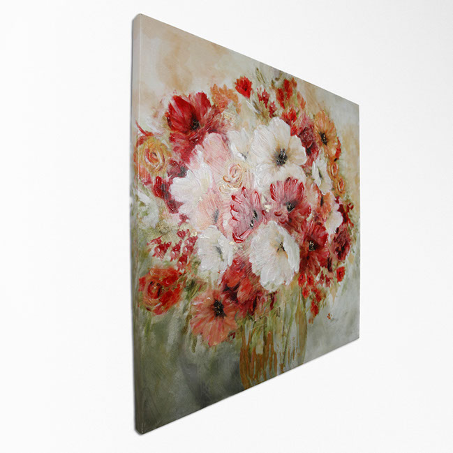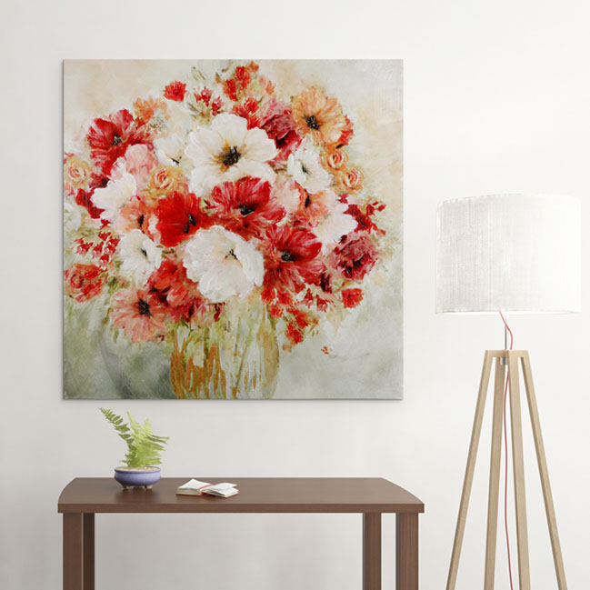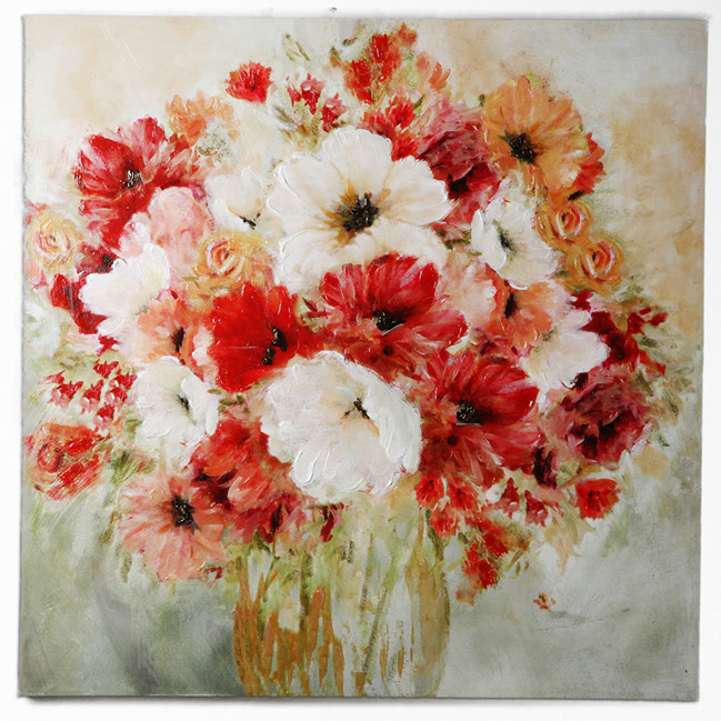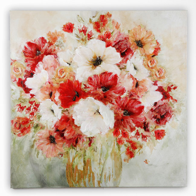 "Garden Passion I" by Carol Robinson is part of our Robinson Series of arts. The Robinson series are highly embellished , bright and cherry floral and also feature hand applied gold accents. This gallery wrapped hand embellished piece comes ready to hang . Pairs Well with Garden Passions II