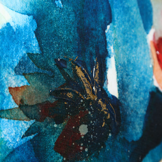 "Color My World I I" by Carol Robinson is part of our Robinson Series of arts. The Robinson series are highly embellished , bright and cherry floral and also feature hand applied gold accents. This gallery wrapped hand embellished piece comes ready to hang . Pairs Well with COLOR MY WORLD II