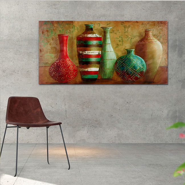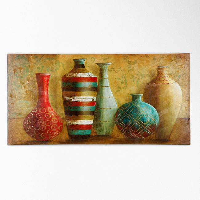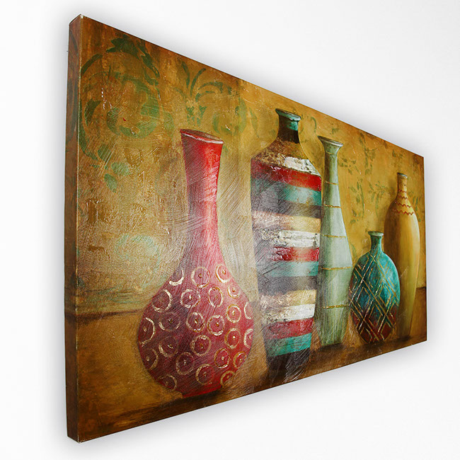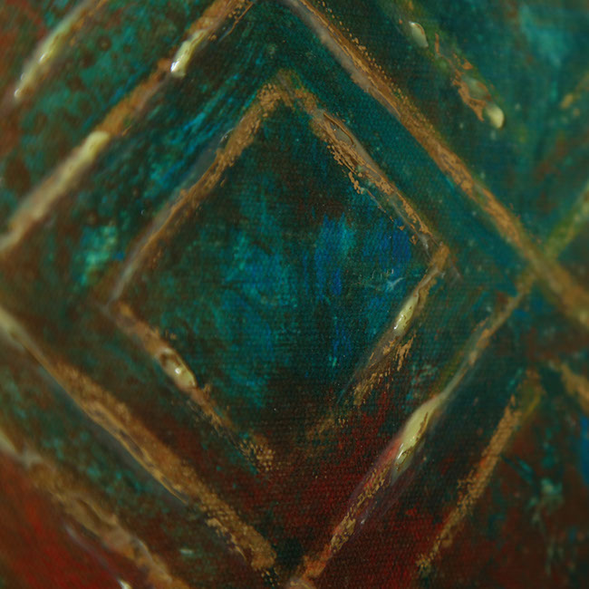 "Vessels of Tabuk" is a part of our OVERSIZED series of arts. Featuring a rich color pallet this piece will be at home just about anywhere. This gallery wrapped hand embellished piece has received a high level of careful hand embellishment .