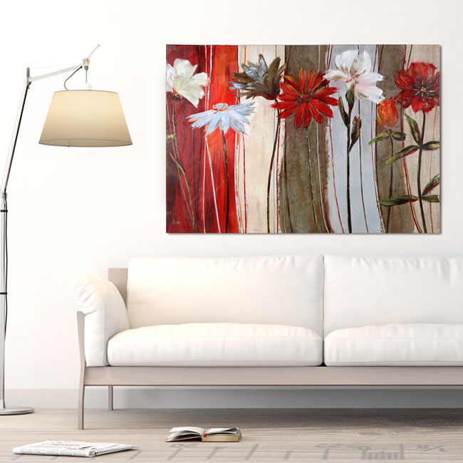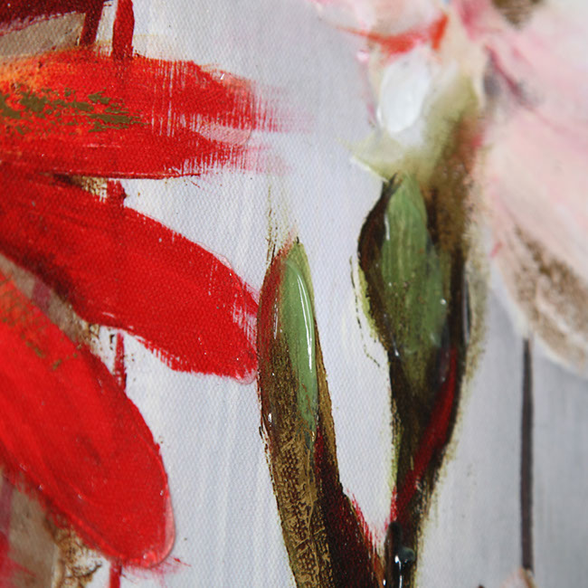 "Spring in Bloom" by NAN F . Featuring a subtle color pallet this piece will be at home just about anywhere. This gallery wrapped hand embellished piece has received a high level of careful hand embellishment .