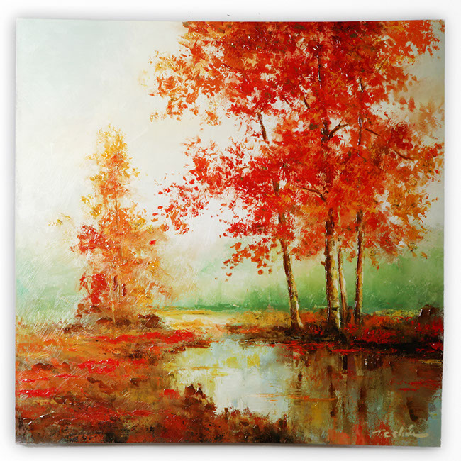 "Autumn's Grace I" by T.C. Chiu Hand Embellished Print on Canvas