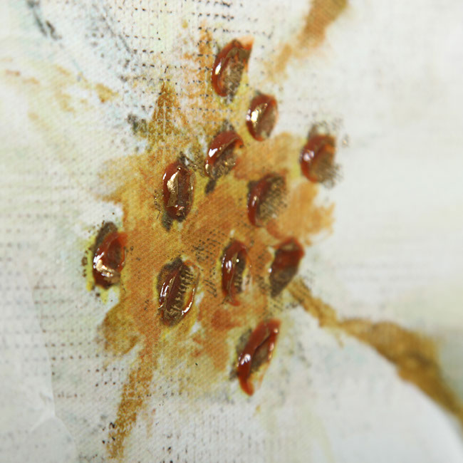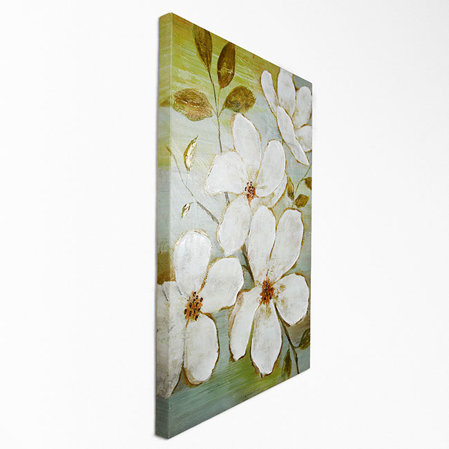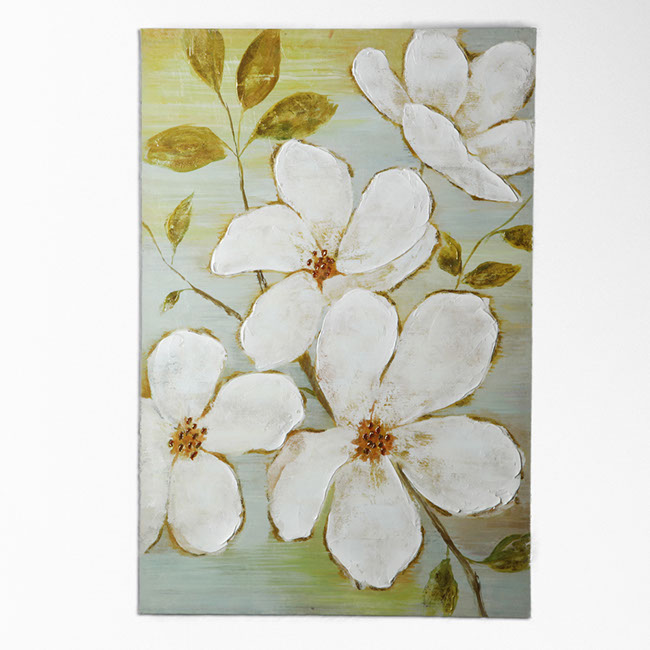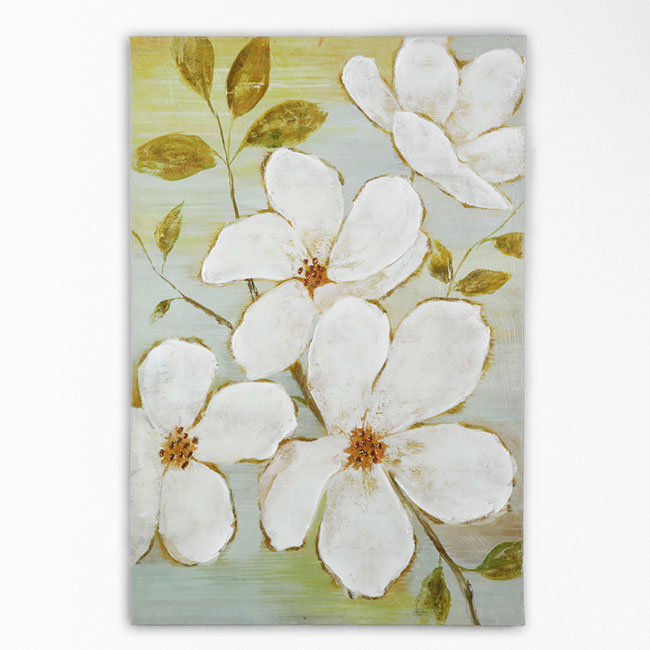 "White Blossoms" by NAN F . Featuring a subtle color pallet this piece will be at home just about anywhere. This gallery wrapped hand embellished piece has received a high level of careful hand embellishment .