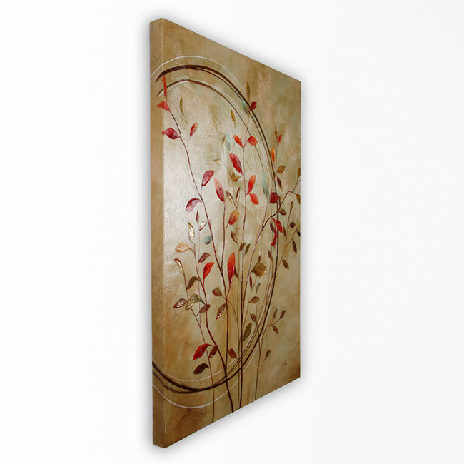 "Autumn's Delight I" by NAN F . Portrayed in earth tones and expertly embellished. This gallery wrapped hand embellished piece has received a high level of careful hand embellishment . Pairs with Autumns Delight II