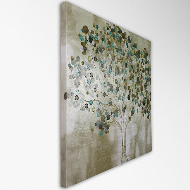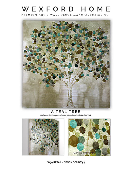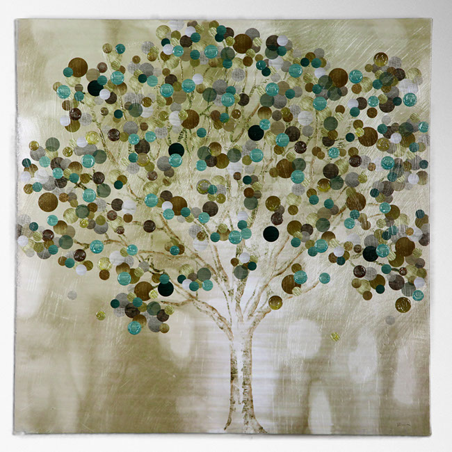 "A Teal Tree" by Katrina Cavan . A very up to date , modern portrayal A Teal Tree is a great addition to today’s decor. This gallery wrapped hand embellished piece has received a high level of careful hand embellishment .