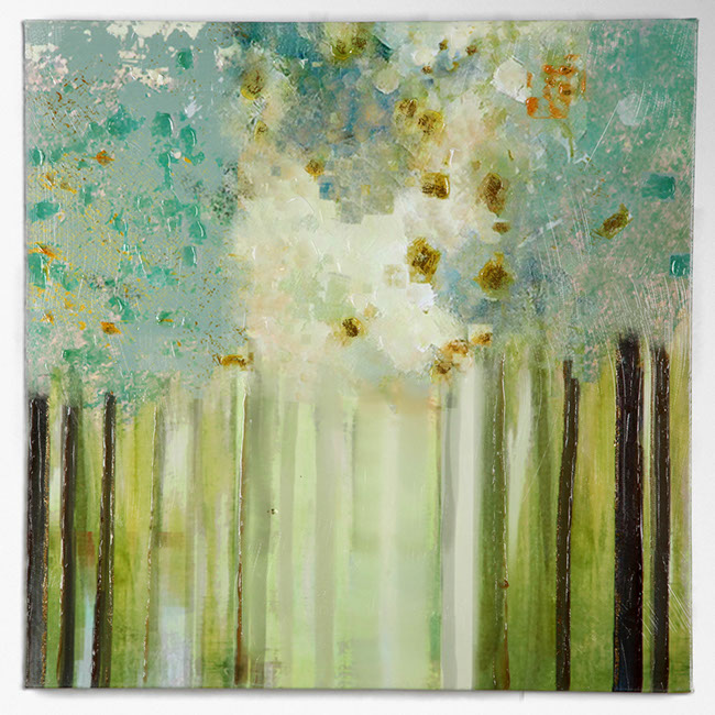 "LAKESIDE" - "MORNING LIGHT" - "SOFT ORCHID" by Susan Jill . Buy as a set , mix & match, or individually. This gallery wrapped hand embellished piece has received a high level of careful hand embellishment .
