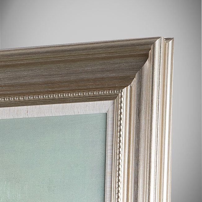 with double moulding, inner 1/2" burlap moulding, outer WHITE moulding