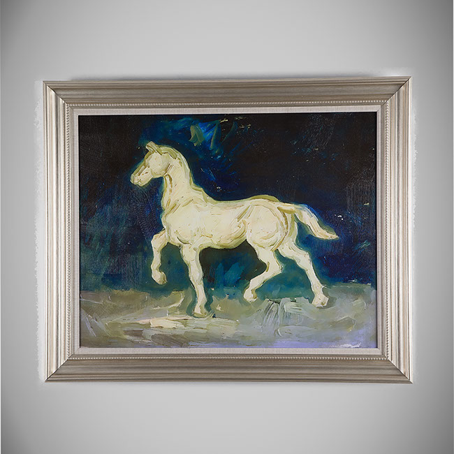 HAC15-56s - PLASTER STATUETTE OF A HORSE w/silver frame
