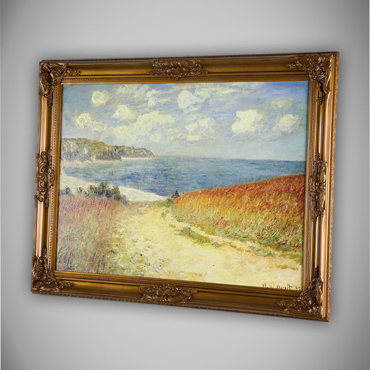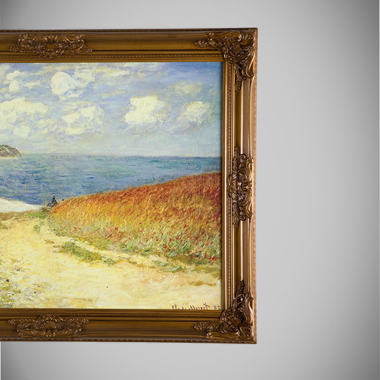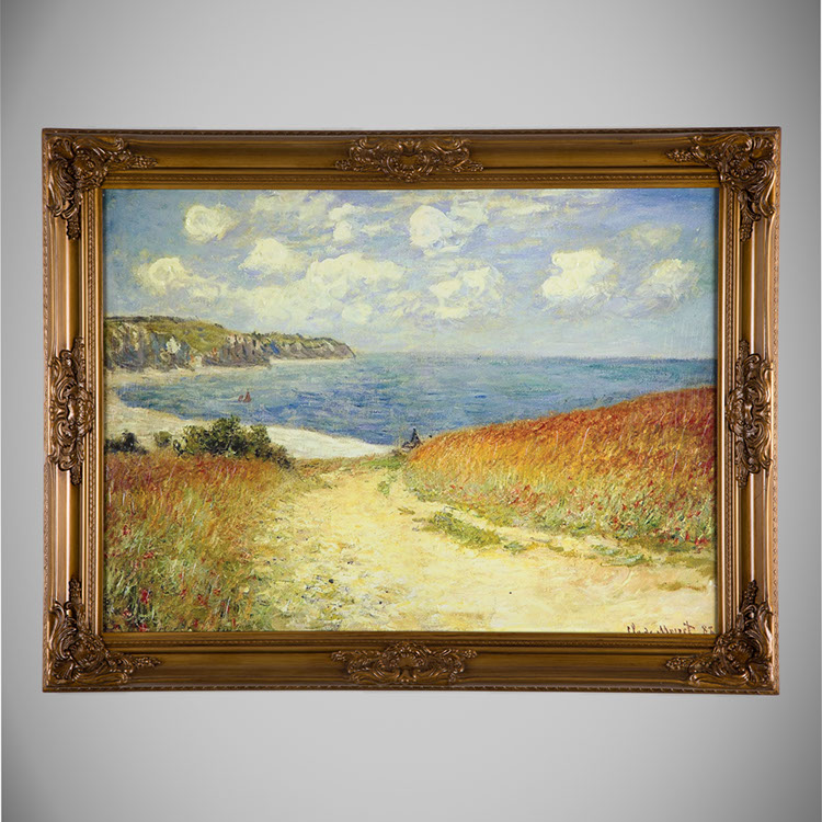 HAC15-61,MONET, 30x22 ART SIZE, 35X29 W FRAME, PREMIUM HAND embellished canvas with double moulding, inner 1/2" burlap moulding, outer brown moulding